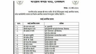 Bharatiya Janata Party की राजस्थान प्रदेश कार्यसमिति घोषित, सभी जिलों को प्रतिनिधित्व