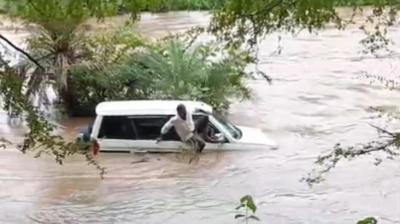 मेडिकल ऑफिसर्स की गाड़ी पानी में बही, खजूर के पेड़ में अटककर चमत्कारिक ढंग से बचीं जानें—लोग बोले: ये तो किसी फिल्मी सीन से कम नहीं”