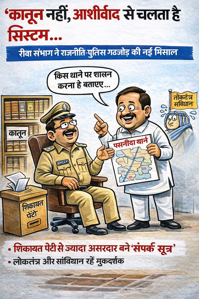 कानून नहीं, आशीर्वाद से चलता है सिस्टम” — रीवा संभाग में राजनीति–पुलिस गठजोड़ बेनकाब