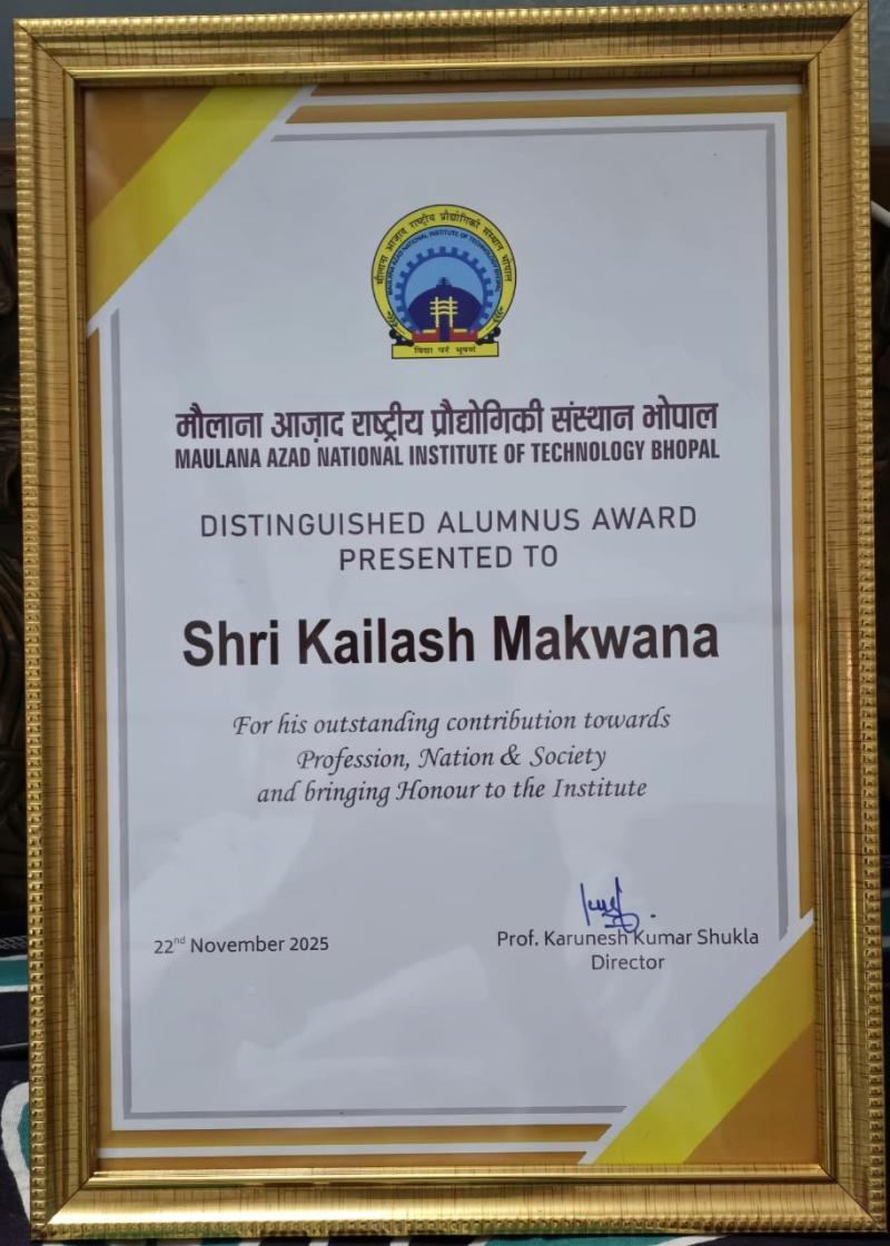 मैनिट ने डीजीपी कैलाश मकवाना को विशिष्ट पूर्व छात्र सम्मान से नवाज़ा