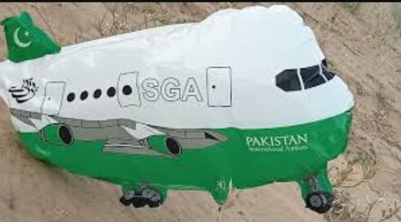 विमान के आकार का गुब्बारा और पाकिस्तानी चिह्न