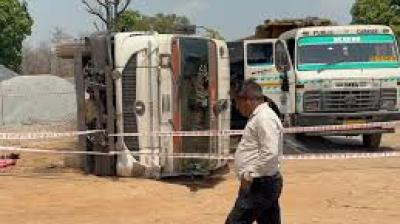 हाइड्रोलिक जैक फेल होने से निर्माण स्थल पर अफरा-तफरी