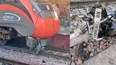 वंदे भारत ट्रेन के सामने बाइक सवार की अचानक एंट्री, यात्रियों ने अनुभव किया खतरनाक पल