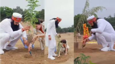 "परंपरा का प्रतीक: बाबा राम रहीम अपनी 'एंजल' के साथ पौधा रोपते नजर आए"